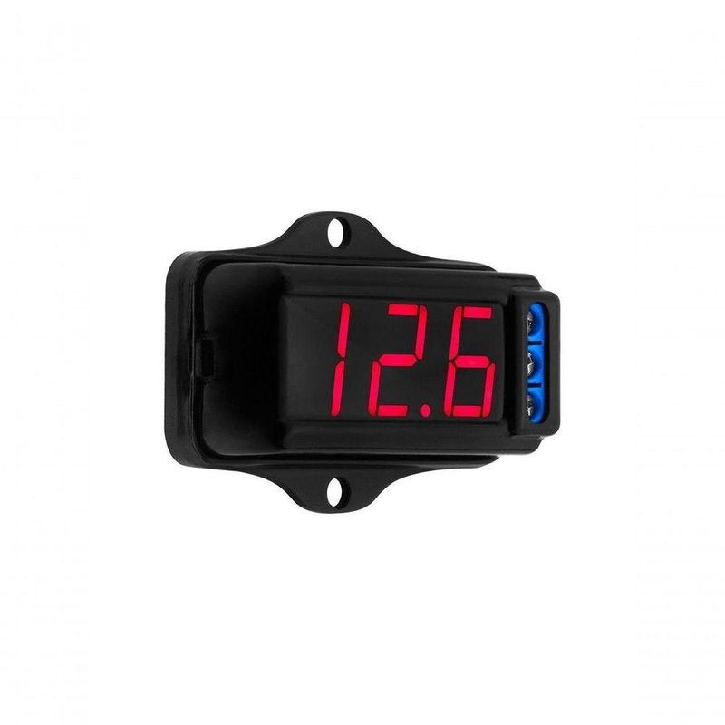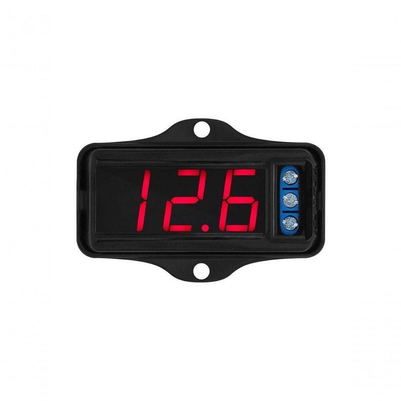 Voltimetro Digital Taramps Vtr-1000Pensando na segurança dos sistemas de som automotivos, a Taramps desenvolveu o voltímetro VTR 1000 para medir e monitorar a tensão elétrica das baterias. Um produto compacto, discreto, de fácil instalação, que vai deixar seu som automotivo completo e vai garantir um funcionamento pleno e seguro. *Imagens meramente ilustrativas. - Quando a tensão chegar a 10,2V, considerada baixa, ele pisca. - Display de 3 dígitos com atualização em tempo real. - Faixa de Medição: 5V a 30V - Precisão (típica): +/- 0,1V - Consumo: 48mA @ 12,6V - Dimensões (LxAxP): 67,5 x 16,5 x 52,5 mm - Peso: 0,1 KgPensando na segurança dos sistemas de som automotivos, a Taramps desenvolveu o voltímetro VTR 1000 para medir e monitorar a tensão elétrica das baterias. Um produto compacto, discreto, de fácil instalação, que vai deixar seu som automotivo completo e vai garantir um funcionamento pleno e seguro. *Imagens meramente ilustrativas. - Quando a tensão chegar a 10,2V, considerada baixa, ele pisca. - Display de 3 dígitos com atualização em tempo real. - Faixa de Medição: 5V a 30V - Precisão (típica): +/- 0,1V - Consumo: 48mA @ 12,6V - Dimensões (LxAxP): 67,5 x 16,5 x 52,5 mm - Peso: 0,1 Kg