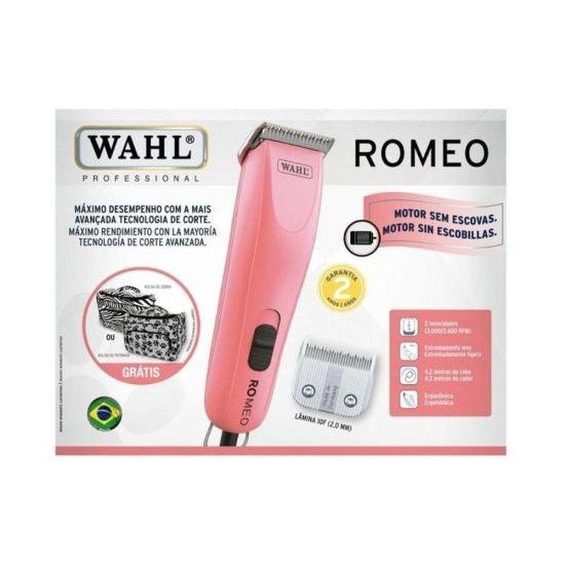 Wahl Máquina De Tosa RomeoA Máquina de Tosa Animal Wahl Romeo é a escolha perfeita para você que busca qualidade e desempenho profissional para cuidar do seu pet. Projetada com atenção aos detalhes, a Romeo combina materiais duráveis com um motor potente e silencioso, proporcionando uma experiência suave e confortável para seu animal. Ao longo de mais de 100 anos, a Wahl se consolidou como líder no mercado, oferecendo a melhor tecnologia e inovação para atender as necessidades dos seus clientes.Com duas velocidades ajustáveis (3000 e 3600 rpm), a Wahl Romeo permite que você personalize a tosa de acordo com o tipo de pelo do seu animal. Sua lâmina #10F, fabricada na Alemanha garantindo precisão e uniformidade, proporciona um corte profissional, sem puxões ou irritações. A leveza e ergonomia da máquina, com apenas 340 gramas, facilitam o manejo e reduzem o cansaço durante o processo de tosa. O cabo de 4,2 metros garante liberdade de movimento e a bivolt garante compatibilidade com qualquer tomada.Escolha a Wahl Romeo e dê a seu pet o cuidado que ele merece!A Máquina de Tosa Animal Wahl Romeo é a escolha perfeita para você que busca qualidade e desempenho profissional para cuidar do seu pet. Projetada com atenção aos detalhes, a Romeo combina materiais duráveis com um motor potente e silencioso, proporcionando uma experiência suave e confortável para seu animal. Ao longo de mais de 100 anos, a Wahl se consolidou como líder no mercado, oferecendo a melhor tecnologia e inovação para atender as necessidades dos seus clientes.Com duas velocidades ajustáveis (3000 e 3600 rpm), a Wahl Romeo permite que você personalize a tosa de acordo com o tipo de pelo do seu animal. Sua lâmina #10F, fabricada na Alemanha garantindo precisão e uniformidade, proporciona um corte profissional, sem puxões ou irritações. A leveza e ergonomia da máquina, com apenas 340 gramas, facilitam o manejo e reduzem o cansaço durante o processo de tosa. O cabo de 4,2 metros garante liberdade de movimento e a bivolt garante compatibilidade com qualquer tomada.Escolha a Wahl Romeo e dê a seu pet o cuidado que ele merece!