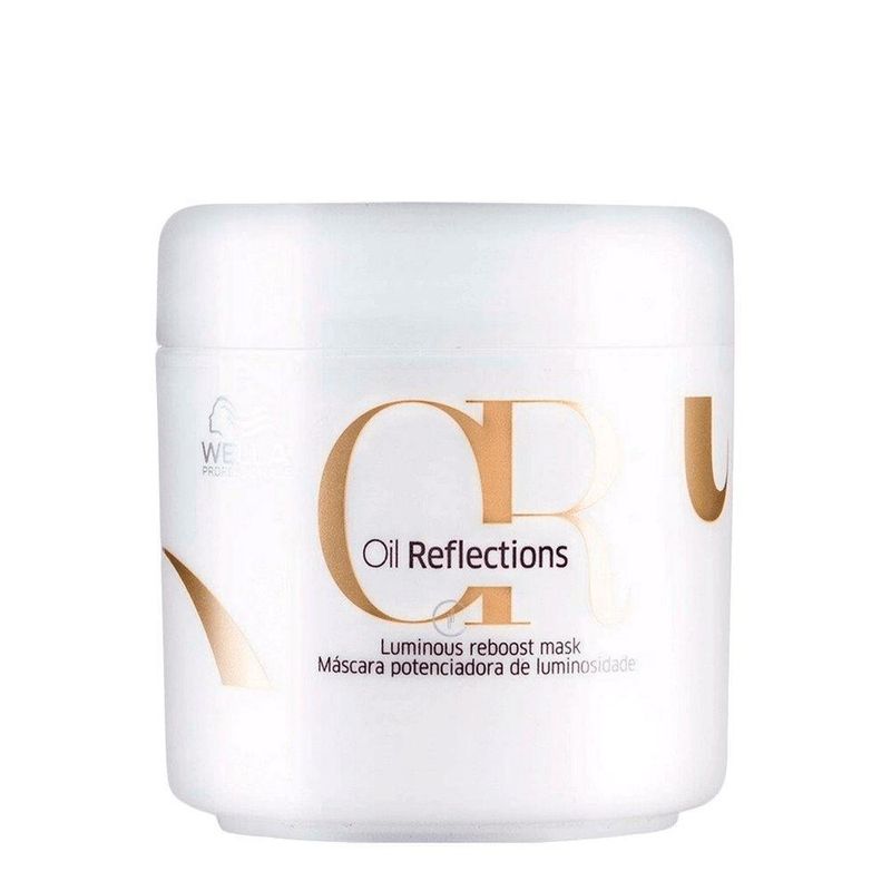 Wella Oil Reflections - Mascara Capilar 150mlA máscara capilar Wella Professionals Oil Reflections Luminous Reboost restaura a estrutura capilar, garante intensidade no brilho e maciez e é ideal para todos os tipos de cabelo.Wella Professionals Oil Reflections Luminous Reboost - Máscara Capilar nutre e hidrata profundamente, promovendo a menor perda de água dos fios. Além disso, revitaliza as fibras capilares através de uma nutritiva para que fiquem extremamente macios, luminosos e com brilho intenso.A máscara Wella Professionals Oil Reflections Luminous Reboost - Máscara Capilar contém uma ação que potencializa o resultado, possui Óleo de Semente de Camélia que auxilia na cicatrização e selagem do fio e Extrato de Chá Branco que é um antioxidante natural.Pirâmide Olfativa:Notas de Cabeça: Romã, Pêssego e Flor de BaunilhaNotas de Coração: Peônia, Coco e JasmimNotas de Base: Almíscar, Baunilha e Cedro.Dica de aplicação:Aplique a máscara nos fios limpos com o shampoo da linha e enluve. Deixe agir de 15 à 20 minutos e enxágue bem.Contém:Wella Professionals Oil Reflections Luminous Reboost - Máscara Capilar