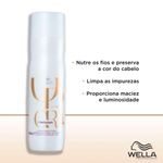 Wella Oil Reflections - Shampoo 250mlWella Oil Reflections - Shampoo 250mlDescrição do Produto:O Wella Oil Reflections Shampoo é um shampoo iluminador que limpa suavemente enquanto nutre e realça o brilho natural dos cabelos. Sua leve e enriquecida com óleos preciosos proporciona maciez, hidratação e luminosidade incomparável, sem pesar os fios. Ideal para todos os tipos de cabelo, especialmente para quem busca madeixas radiantes e sedosas.Características:Marca: Wella ProfessionalsLinha: Oil ReflectionsCategoria: ShampooBenefícios:Limpeza suave sem ressecar os fiosHidratação equilibrada e nutrição intensaBrilho espelhado e toque sedosoProteção contra agressões externasIngredientes Principais:Óleo de Camélia: Nutrição profunda e suavidade aos cabelosExtrato de Chá Branco: Ação antioxidante para proteger contra danos externosModo de Aplicação:Aplique o Wella Oil Reflections Shampoo nos cabelos molhados.Massageie suavemente até formar espuma.Enxágue completamente e, se necessário, repita o processo.Para melhores resultados, utilize a linha completa Oil Reflections.Benefícios do Produto:Limpeza suave e nutrição intensaBrilho radiante e cabelos mais sedosos leve, ideal para todos os tipos de cabeloProteção contra danos externos e ressecamentoDê um toque de luxo ao seu cabelo com o Wella Oil Reflections Shampoo e conquiste fios brilhantes, macios e saudáveis!