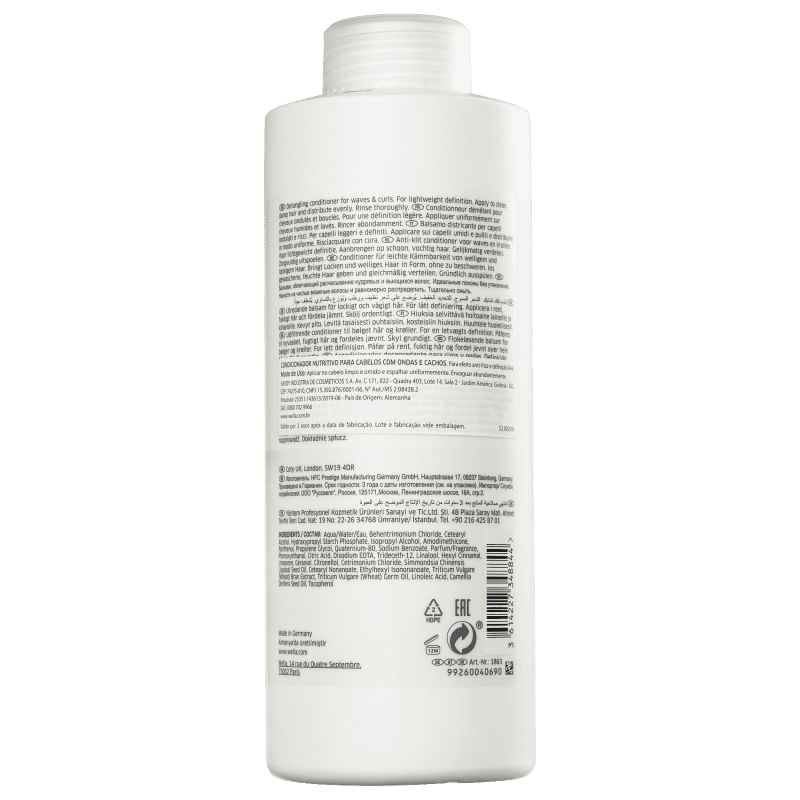 Wella Professionals Nutricurls - Condicionador 1000mlO Wella Professionals Nutricurls Condicionador foi desenvolvido especialmente para cabelos ondulados e cacheados, proporcionando hidratação intensa, definição e controle do frizz. Sua fórmula inovadora contém o Complexo Nourish-In, que combina extrato de trigo e óleo de jojoba para nutrir os fios profundamente sem pesar, mantendo a leveza e a elasticidade naturais dos cachos. O resultado são cachos mais macios, brilhantes e bem definidos.Características:Marca: Wella ProfessionalsLinha: NutricurlsCategoria: CondicionadorIndicação: Cabelos ondulados e cacheadosBenefícios: Nutrição intensa, definição dos cachos e redução do frizzPrincipais Ingredientes:Óleo de Jojoba: Hidrata e controla o frizz sem pesarExtrato de Trigo: Nutre os fios, proporcionando maciez e brilhoComplexo Nourish-In: Mantém a hidratação ideal para cachos definidos e saudáveisModo de Aplicação: Após lavar os cabelos com shampoo, aplique o condicionador no comprimento e pontas. Deixe agir por alguns minutos e enxágue completamente. Para melhores resultados, utilize em conjunto com outros produtos da linha Nutricurls.Benefícios do Produto:Cachos mais definidos e hidratados sem perder a levezaControle do frizz e redução do ressecamentoFios nutridos e fortalecidos, prevenindo a quebraMaciez e brilho intensos para um acabamento impecávelO Wella Professionals Nutricurls Condicionador é ideal para quem deseja cachos mais nutridos, definidos e livres do frizz, mantendo a beleza e a leveza natural dos fios.
