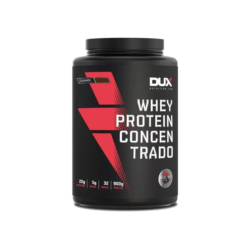 Whey Protein Concentrado Cookies Pote 900g - Dux Nutrition Uma proteína super construtora, 100% pura, extraída exclusivamente do leite fresco, sem adição de proteínas inferiores, mais baratas. O Whey Protein Concentrado DUX possui um perfil nutricional completo e um sabor real, ideal para ser consumido pré/pós treinos, como um snack prático, ou em suas receitas. - Matéria-prima premium importada, com alto teor de leucina, desenvolvida para criar um produto com sabor real e marcante - Valores nutricionais robustos, sem excessos, com quantidades ideais de carboidratos e gorduras do leite - Perfil de aminoácidos imbatível: 5g de BCAAs; 4,3g de glutamina e 2,5g de leucina, por dose. - O nome diz tudo: Whey Protein Concentrado 100% puro, com transparência total, do nome do produto à lista de ingredientes - Não contém goma xantana, complexos vitamínicos à base de maltodextrina, espessantes, derivados de soja, estabilizantes, conservantes ou qualquer outro ingrediente inferior - Corantes 100% naturais e veganos, com propriedades antioxidantes Ingredientes: Proteína concentrada do soro do leite, aromas idênticos aos naturais, edulcorantes sucralose e acessulfame de potássio e emulsificante lecitina de soja. CONTÉM LACTOSE. CONTÉM GLÚTEN. ALÉRGICOS: CONTÉM DERIVADOS DE LEITE E SOJA. PODE CONTER TRIGO, AVEIA, CEVADA, CENTEIO, OVO E CASTANHA. ¹PRODUTO NATURALMENTE SEM GLÚTEN, PORÉM FABRICADO EM EQUIPAMENTO ONDE SE PROCESSA O GLÚTEN.