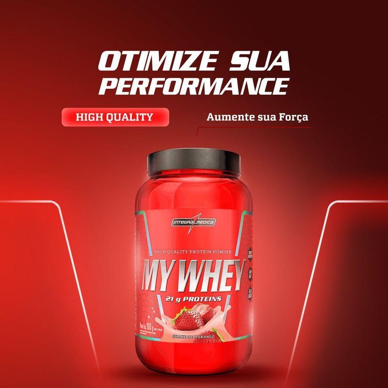 Whey Protein Integralmedica My Whey 900g Pote MorangoMY WHEY PÓ contém apenas whey protein em sua composição proteica - uma proteína de altíssima qualidade, valor nutricional, e 21 g de proteínas por dose. MY WHEY PÓ é rico em aminoácidos essenciais, incluindo os BCAAs, que são compostos importantes para a recuperação muscularTamanho: 900g | Glutén: Não Contém | Formato do : Pote | Lactose: Não Contén | Tipo de : Proteina | Marca: Integralmedica | Sabor: Baunilha, Chocolate, Shake de Cookies, Morango | Classe de : Proteínas | Função do : Energia/Esportivo | Código de registro sanitário da Anvisa: 271/23 | Sabor: Morango
