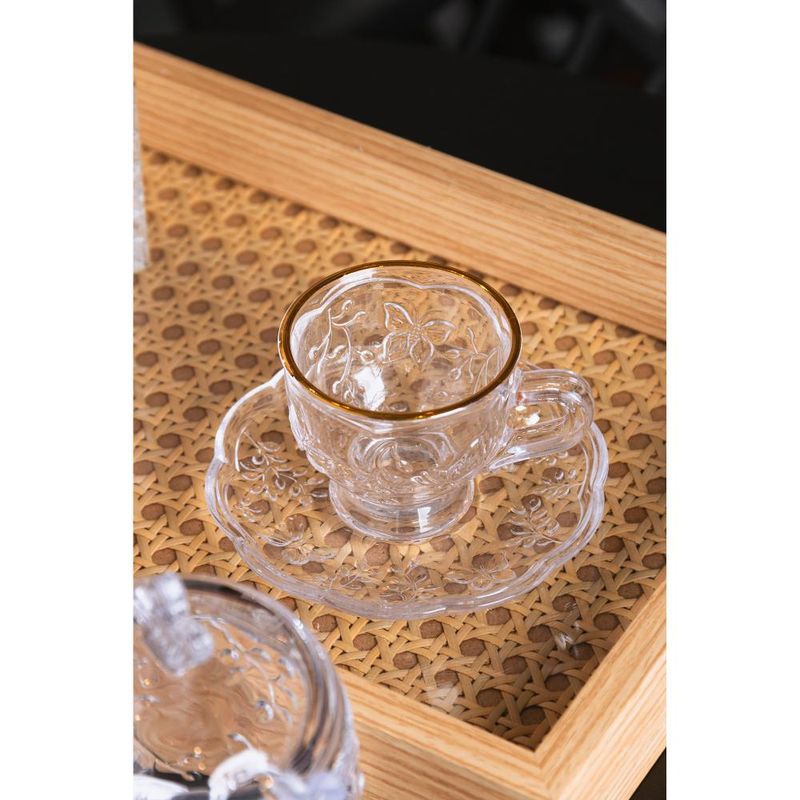 Xícara de Café com Pires Lyor New Butterfly com Fio de OuroXícara de Café com Pires New Butterfly com Fio de Ouro 80ml Cristal Ecológico - LyorXícara de Café com Pires New Butterfly com Fio de Ouro 80ml Cristal Ecológico - LyorDesfrute do seu café com um toque de versatilidade com a Xícara de Café com Pires New Butterfly com Fio de Ouro da Lyor. Feita de cristal ecológico, esta xícara combina elegância, qualidade e consciência ambiental, proporcionando uma experiência única em cada gole. Design LuxuosoOs detalhes de borboleta e o acabamento com fio de ouro trazem um toque de elegância e requinte, transformando cada momento do café em uma experiência especial.Material SustentávelFabricada em cristal ecológico, a xícara oferece a beleza e o brilho do cristal tradicional com menor impacto ambiental, sendo uma escolha sustentável e responsável.Capacidade IdealCom 80ml, a xícara possui o tamanho perfeito para servir um café expresso, permitindo que você aprecie o aroma e sabor do café na medida certa.Eleve sua experiência com café, combinando luxo, sustentabilidade e elegância.Lyor - Soluções completas para o seu lar.Contém: 6 Xícaras6 PiresLava Louça: NãoMicroondas: NãoForno: NãoFogão: NãoFreezer: NãoMedidas Produto: Altura 5,70cm x Largura 5,80cm x Comprimento 8,30cmPeso: 0,21KgCor: IncolorMaterial: NeopreneLavar com detergente neutro, esponja macia e secar imediatamente.