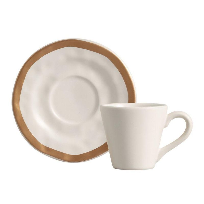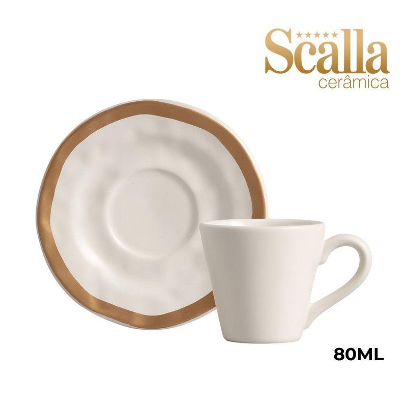 Xícara De Café De Cerâmica Bege Filete Amassada Scalla 80mlXícara de Café de Cerâmica Bege Filete Amassada Scalla 80mlA cerâmica da xícara contribui para a manutenção da temperatura de cafés e outras bebidas quentes por um período estendido, com 180ml de capacidade, adequada para porções individuais. A composição cerâmica também evita interferências no sabor da bebida e facilita a limpeza após o uso, sendo resistente para o cotidiano.O acabamento em filete amassada na borda da xícara proporciona um contato confortável e distinto aos lábios durante o consumo. A alça, dimensionada para encaixe seguro, permite o manuseio firme do recipiente, isolando as mãos do calor da bebida e minimizando o risco de acidentes.Código: 126219Referência: 554.90375Marca: ScallaCapacidade: 80mlPeso: 200gCor: BegeMaterial: CerâmicaDimensões do produto (AxLxC): 7,00x11,00x11,00cmConteúdo da embalagem: 1 Xícara 80ml e 1 PiresSobre a Marca:A Cerâmica Scalla é uma das mais tradicionais fabricantes de produtos cerâmicos no Estado de São Paulo. Uma empresa que se mantém na liderança do mercado consumidor brasileiro, se destacando pela qualidade de sua matéria-prima, que é refletida diretamente no resultado final de seu produto.