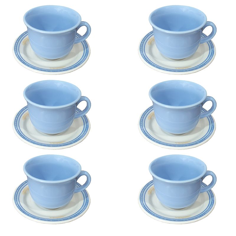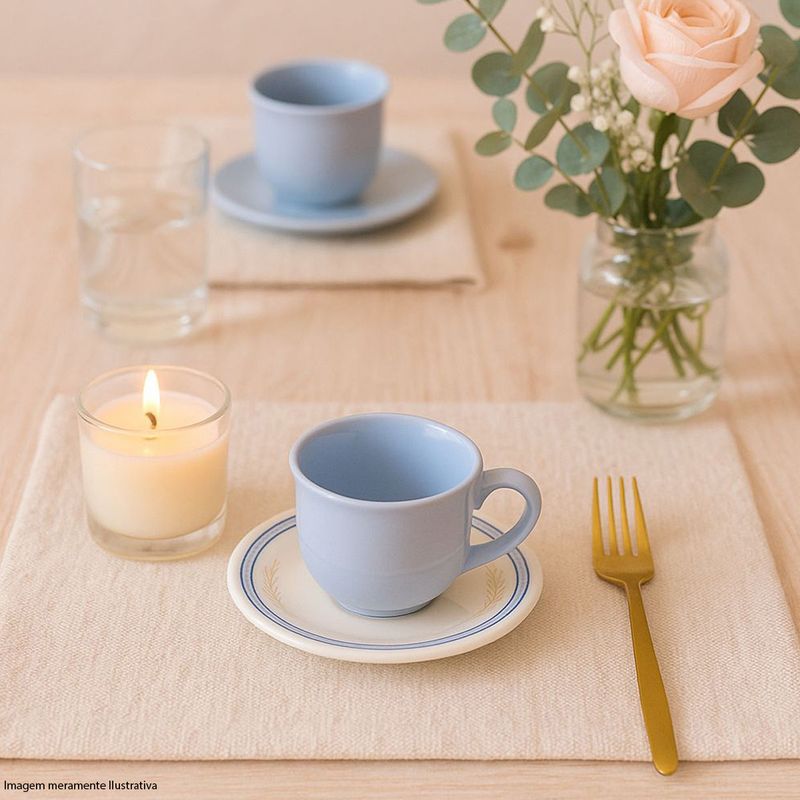 Xícara de chá com Pires Donna Grano 200ml 6 Unidades - Biona 140599 O trigo é a estrela da decoração Grano. Em italiano, grano significa trigo, este cereal essencial na alimentação e na produção de pães e bolos. A combinação de azul e amarelo em tons suaves é harmônica e forma um conjunto delicado, mas cheio de personalidade. Características do Produto: Material: Cerâmica. Marca: Biona. Fabricado: Oxford. Linha: Grano. Conteúdo da Embalagem: 6 Xícara com Pires. Cor: Branco e Azul. Formato: Redondo. Capacidade: 200 ml. Decoração: Estampado. Altura da Xícara: 7 cm. Diâmetro da Xícara: 9 cm. Diâmetro do Pires: 14 cm. Garantia de Fabricação: 90 dias (Defeitos de fabricação). Recomendações de uso: Ao usar o produto pela primeira vez, lavar bem a peça com esponja macia e sabão neutro; Lavar as peças utilizando esponja macia e sabão neutro; Não levar as peças ao forno; Não submeter as peças a chama direta. Imagens meramente ilustrativas.