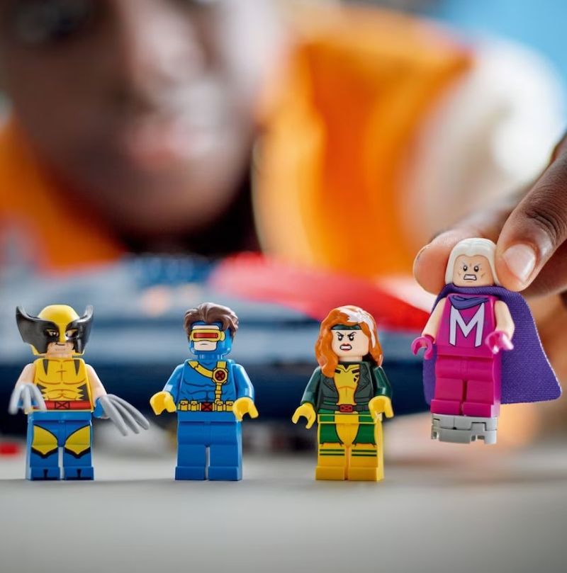 • Leve as crianças a bordo do X-Jet da série de TV X-Men ྜྷ da Marvel Studios • 4 minifiguras de X-Men: Wolverine, Ciclope, Vampira e Magneto • 2 atiradores de espigas, 2 atiradores de mola e 2 caixas de armazenamento removíveis • Quando não estiver em ação, o modelo de avião para construir pode ser exibido para todos admirarem • Presente para fãs de filmes da Marvel, aviões a jato e conjuntos de super-heróis para construir LEGO® • As crianças podem ampliar e girar conjuntos em 3D usando o aplicativo intuitivo LEGO® Builder • Veja o linha completa LEGO® Marvel com mais brinquedos de super-heróis para construir para crianças • O conjunto completo de 359 peças para construir mede mais de 30 cm de comprimento